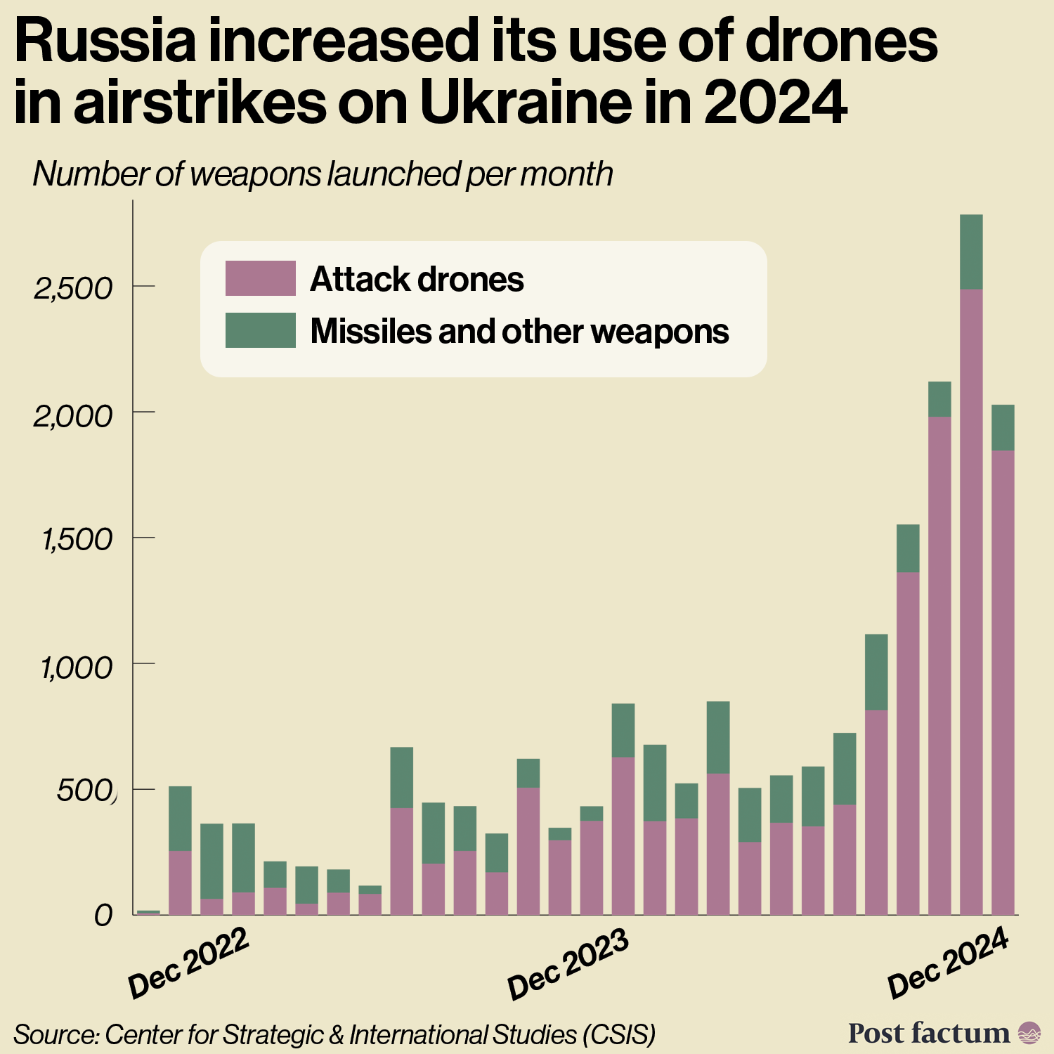 The use of drones by Russia has particularly increased since 2024.