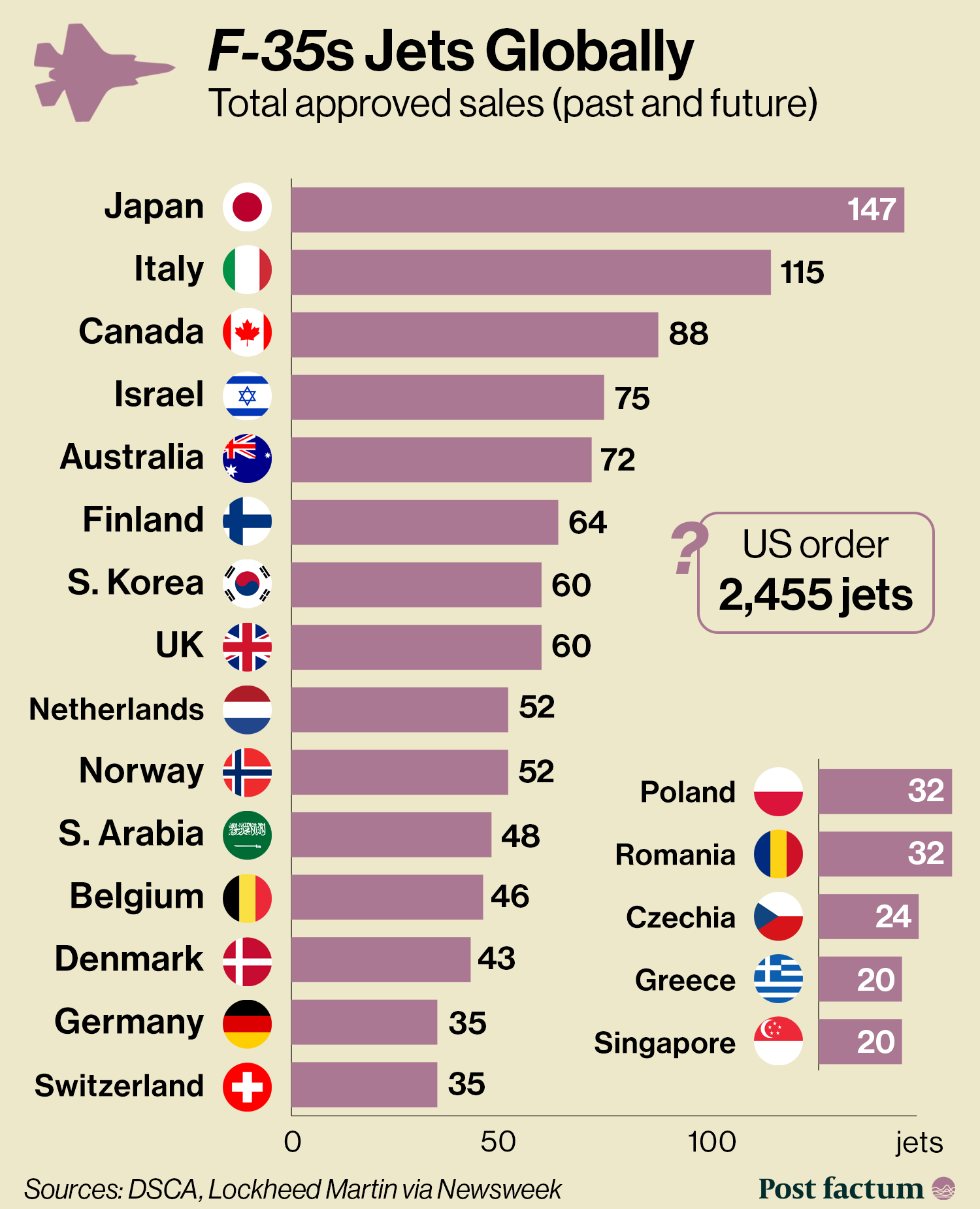 Japan and South Korea ordered over 200 F-35 jets, being key US allies in the region.