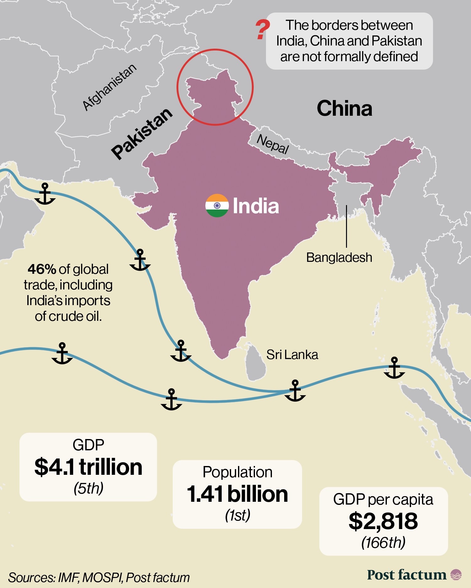 India is the world's 3rd largest buyer of oil, importing about 87% of its consumption, making it dependent on the supply and shipping of oil.
