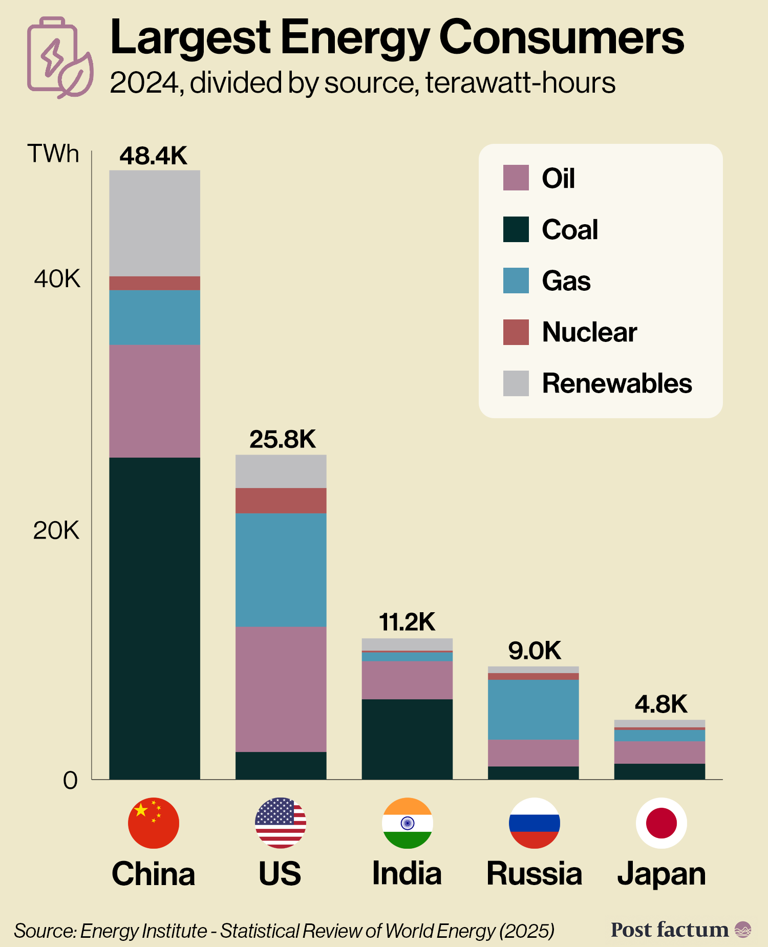 In contrast, European countries produced energy from imported oil and gas, especially from Russia.