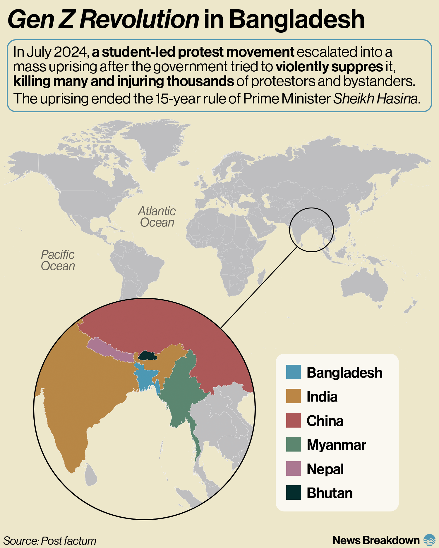 On 5 August 2024 Bangladesh’s Prime Minister Sheikh Hasina resigned and fled the country to India after more than 15 years in power.