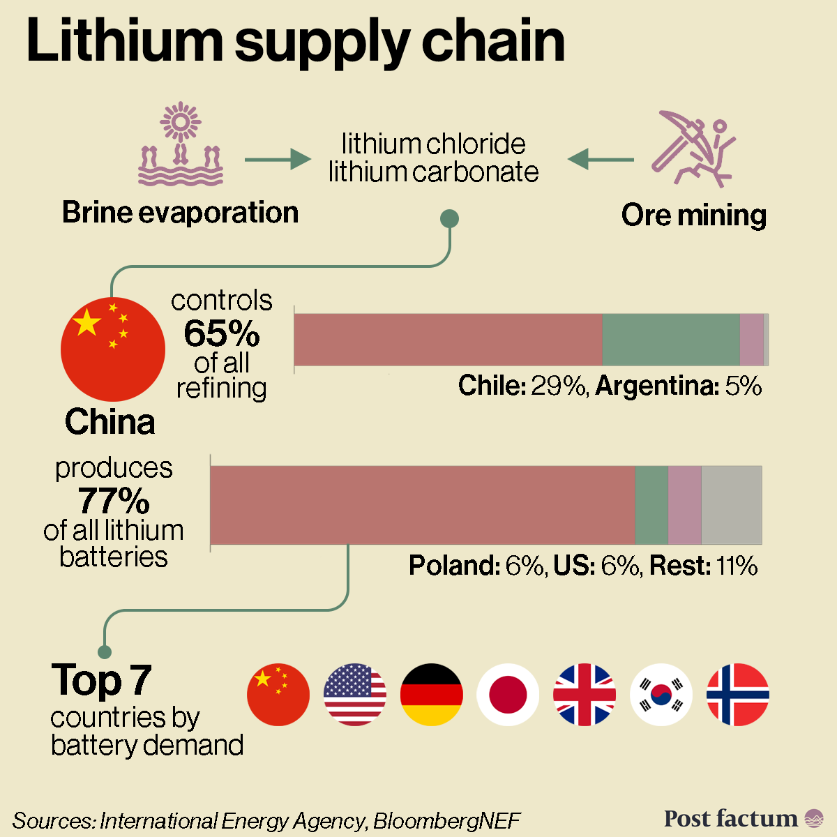 China has a near-monopoly on rare earths, controlling almost 90% of refining.